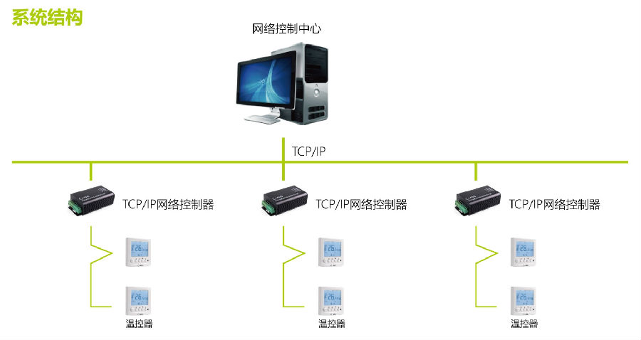 EHS德易安联网温控器管理系统对园区通过统一的通讯协议可以进行联网控制,管理中心可以监控每个房间或区域的温控器开关,可以监测房间温度并可以远程设置温度,可以远程设置风机三速,远程设置制冷、制热及通风方式,远程设置睡眠状态等,可以在下班前提前陆续关闭温控器,从而达到高效管理和节能目的。